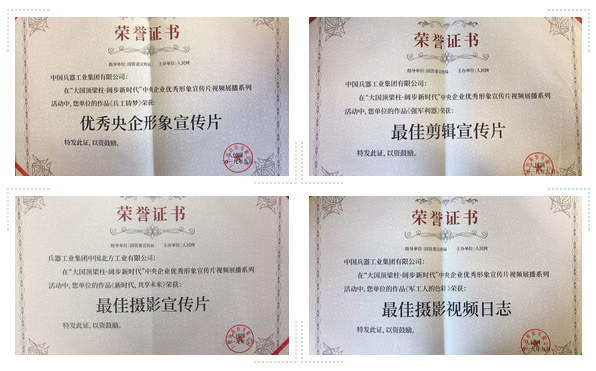 本次展播活動(dòng)分設(shè)形象宣傳片、員工視頻日志兩個(gè)賽道,從中央企業(yè)報(bào)送的2600余部作品中,評(píng)選出了“優(yōu)秀央企形象宣傳片”、“最具大國(guó)精神宣傳片”和“央企員工優(yōu)秀視頻日志”等十二個(gè)種類、120部?jī)?yōu)秀作品,中國(guó)兵器工業(yè)集團(tuán)4部作品獲獎(jiǎng)。