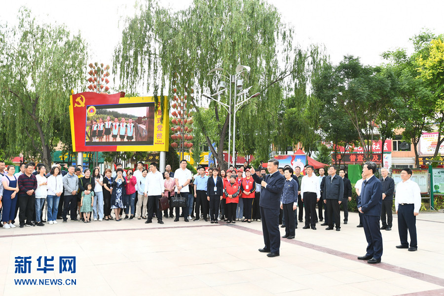 6月8日至10日,中共中央總書(shū)記、國(guó)家主席、中央軍委主席習(xí)近平在寧夏考察。這是6月8日下午,習(xí)近平在吳忠市利通區(qū)金花園社區(qū)廣場(chǎng),同居民們親切交流。 新華社記者 燕雁 攝