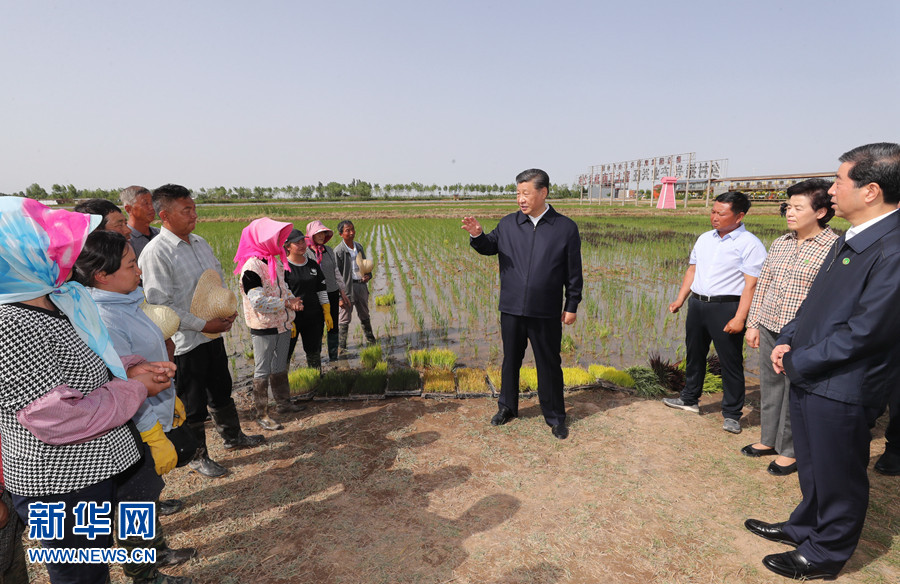 6月8日至10日,中共中央總書(shū)記、國(guó)家主席、中央軍委主席習(xí)近平在寧夏考察。這是6月9日下午,習(xí)近平在銀川市賀蘭縣稻漁空間鄉(xiāng)村生態(tài)觀光園,同正在勞作的村民親切交談。 新華社記者 鞠鵬 攝