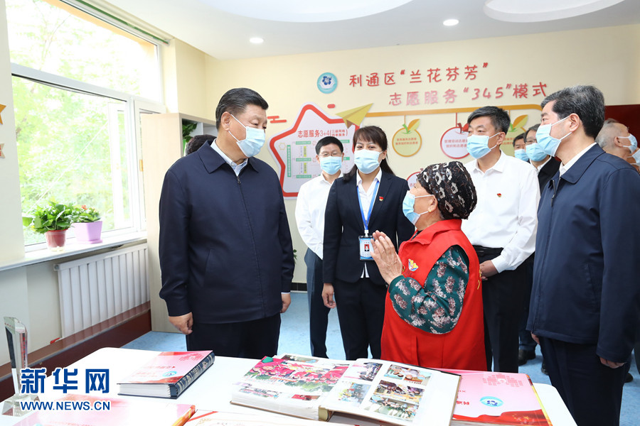 6月8日至10日,中共中央總書(shū)記、國(guó)家主席、中央軍委主席習(xí)近平在寧夏考察。這是6月8日下午,習(xí)近平在吳忠市利通區(qū)金花園社區(qū)黨群活動(dòng)服務(wù)中心,同社區(qū)志愿者代表親切交談。 新華社記者 鞠鵬 攝