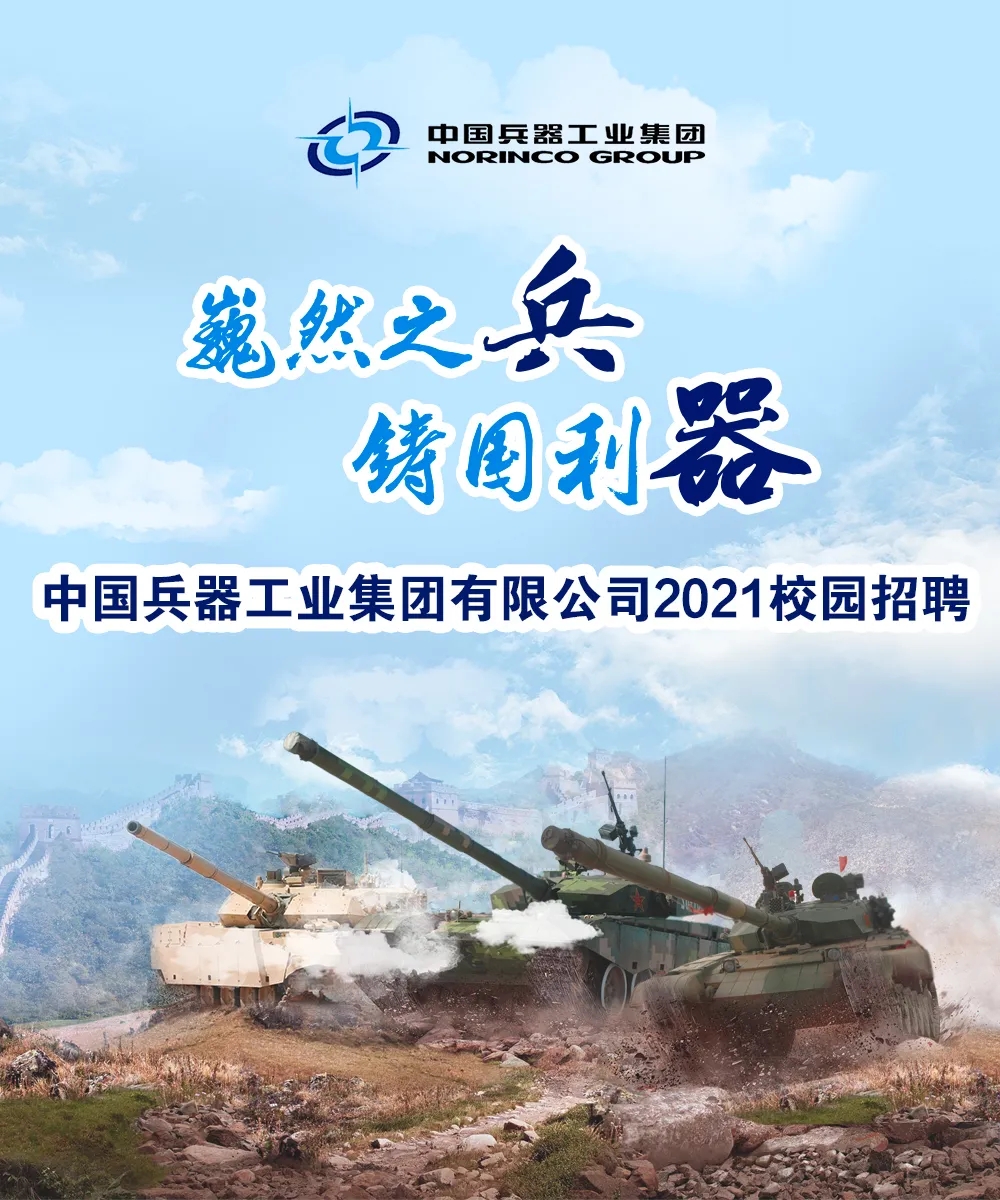 時(shí)間的軌道 承載著奮斗的汗水和腳印 十?dāng)?shù)年寒窗,半余生苦讀 即將告別象牙塔的你 是否已經(jīng)準(zhǔn)備好 在新的人生道路上揚(yáng)帆起航 我們懂你的赤子之心 我們將伴你共同成長 感受中國兵器的魅力 來兵器工業(yè),攜夢想同行 中國兵器工業(yè)集團(tuán) 2021春季校園招聘 正式啟動! 關(guān)于我們 中國兵器工業(yè)集團(tuán)有限公司 ◆是我軍機(jī)械化、信息化、智能化裝備發(fā)展的骨干 ◆是全軍毀傷打擊的核心支撐 ◆是現(xiàn)代化新型陸軍體系作戰(zhàn)能力科研制造的主體 ◆是國家“一帶一路”建設(shè)和軍民融合發(fā)展的主力 中國兵器工業(yè)集團(tuán)現(xiàn)有50余家子集團(tuán)和直管單位,分布在北京、陜西、內(nèi)蒙古等29個(gè)省、市、自治區(qū),在全球70余個(gè)國家和地區(qū)設(shè)立了100余家境外分子公司和代表處。集團(tuán)公司連續(xù)16個(gè)年度和5個(gè)任期蟬聯(lián)國務(wù)院國資委業(yè)績考核A級,位列世界500強(qiáng)企業(yè)排名第154位。 揮別校園 人生的挑戰(zhàn)才剛剛開始 為你的未來 選擇一個(gè)廣闊的舞臺 加入兵器工業(yè),追尋人生理想 揮灑青春激情,共鑄強(qiáng)大國防 履行強(qiáng)軍首責(zé),推動高質(zhì)量發(fā)展 中國兵器工業(yè)集團(tuán) 期待志同道合的你 |