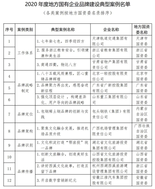 5月10日,由國家發(fā)展改革委等7部門和上海市政府共同主辦,國務(wù)院國資委特別支持的2021年中國品牌日活動(dòng)在上海舉辦。 活動(dòng)現(xiàn)場,國資委指導(dǎo)舉辦了中國企業(yè)品牌建設(shè)分論壇,會(huì)上發(fā)布了《2020年度中央企業(yè)品牌建設(shè)發(fā)展報(bào)告》、2020年度100個(gè)國有企業(yè)品牌建設(shè)典型案例和100個(gè)優(yōu)秀品牌故事。中國兵器工業(yè)集團(tuán)北重集團(tuán)的“技術(shù)創(chuàng)新和商業(yè)模式創(chuàng)新并驅(qū),打造知名民族礦用車品牌”入選2020年度100個(gè)國有企業(yè)品牌建設(shè)典型案例,中國兵器工業(yè)集團(tuán)北方公司的微電影《大山里升起的希望》入選2020年度100個(gè)優(yōu)秀品牌故事。 《2020年度中央企業(yè)品牌建設(shè)發(fā)展報(bào)告》分析了當(dāng)前中央企業(yè)加強(qiáng)品牌建設(shè)的形勢要求,從戰(zhàn)略引領(lǐng)、專業(yè)運(yùn)營、支撐保障、組織管控、全球推廣5個(gè)方面總結(jié)了中央企業(yè)年度品牌建設(shè)進(jìn)展。 2020年度100個(gè)國有企業(yè)品牌建設(shè)典型案例和100個(gè)優(yōu)秀品牌故事,匯集企業(yè)優(yōu)秀經(jīng)驗(yàn)做法,豐富國企品牌資源池,促進(jìn)企業(yè)相互學(xué)習(xí)借鑒,加快提高品牌管理專業(yè)化水平。 2020年度100個(gè)國有企業(yè) 品牌建設(shè)典型案例 來源/國資小新 |