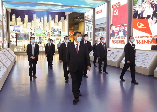 新近落成的中國共產(chǎn)黨歷史展覽館巍然矗立,氣勢恢宏。下午3時20分許,習(xí)近平等黨和國家領(lǐng)導(dǎo)同志來到這里,步入展廳參觀展覽。展覽以“不忘初心、牢記使命”為主題,精心設(shè)計了“建立中國共產(chǎn)黨 奪取新民主主義革命偉大勝利”、“成立中華人民共和國 進行社會主義革命和建設(shè)”、“實行改革開放 開創(chuàng)和發(fā)展中國特色社會主義”、“推進中國特色社會主義進入新時代 全面建成小康社會 開啟全面建設(shè)社會主義現(xiàn)代化國家新(人民日報)征程”4個部分,通過2600余幅圖片、3500多件套文物實物,第一次全方位、全過程、全景式、史詩般展現(xiàn)中國共產(chǎn)黨波瀾壯闊的百年歷程,濃墨重彩地反映黨的不懈奮斗史、不怕犧牲史、理論探索史、為民造福史、自身建設(shè)史,使人們深刻認識到紅色政權(quán)來之不易、新中國來之不易、中國特色社會主義來之不易,深刻認識到中國共產(chǎn)黨為什么能、馬克思主義為什么行、中國特色社會主義為什么好。