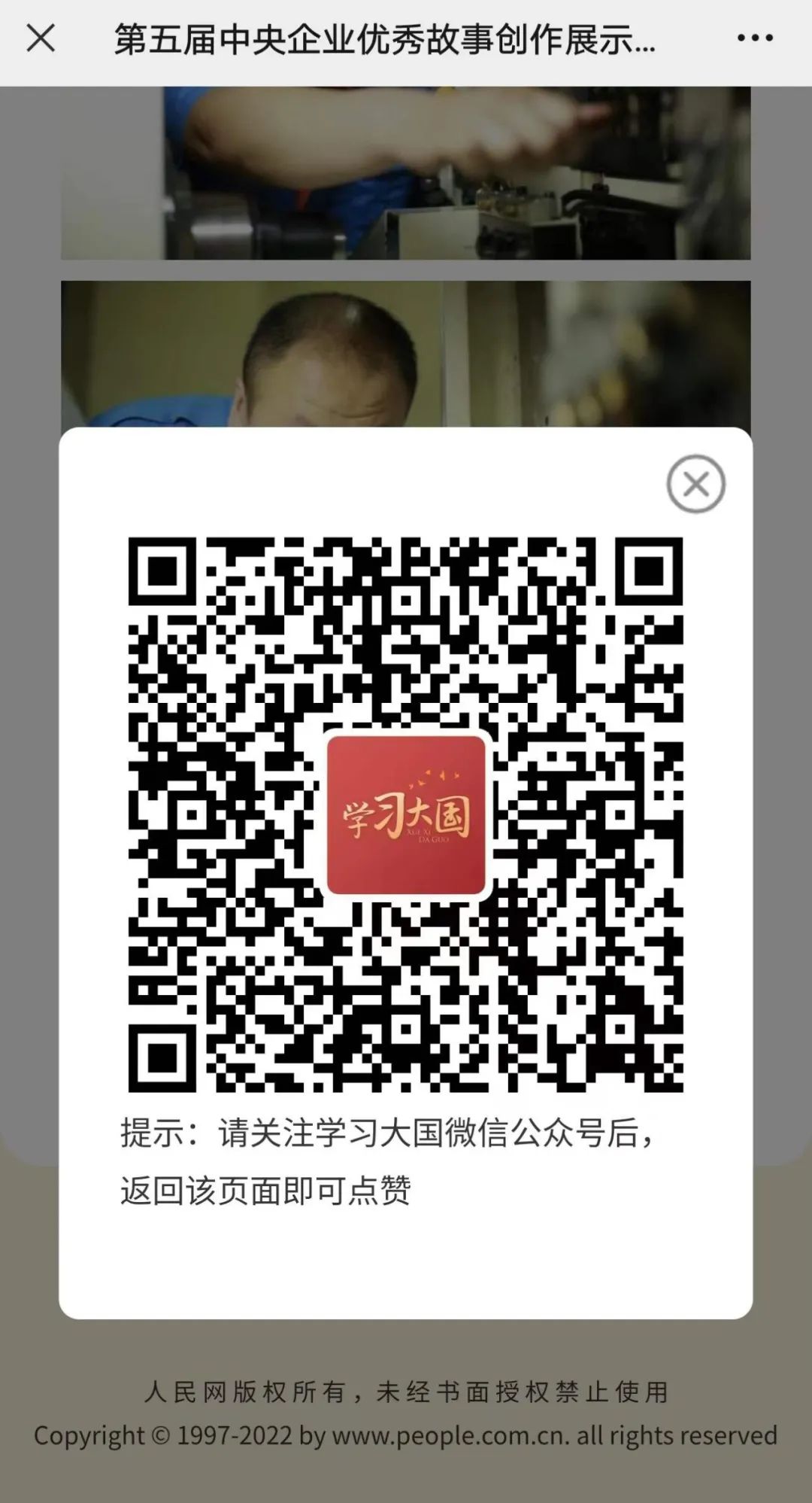 目前,參選的優(yōu)秀央企故事正在活動(dòng)官網(wǎng)集中展示,歡迎大家一起為兵器工業(yè)集團(tuán)優(yōu)秀故事點(diǎn)贊!網(wǎng)友可在活動(dòng)官網(wǎng)搜索作品名稱或單位名稱,進(jìn)入作品底部進(jìn)行點(diǎn)贊。