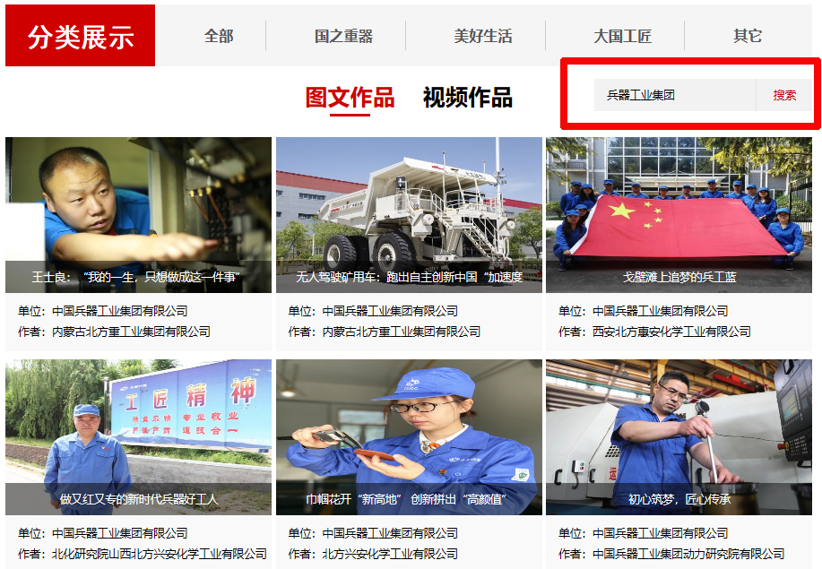 在搜索欄輸入“兵器工業(yè)集團(tuán)”