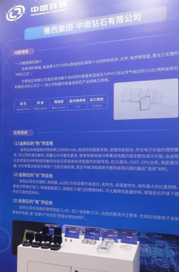 豫西集團(tuán)中南鉆石展出的高品質(zhì)、大尺寸lla型金剛鉆石具有十分優(yōu)異的熱學(xué)、光學(xué)、電學(xué)性能,是新材料領(lǐng)域當(dāng)之無愧的“鉆石之王”。