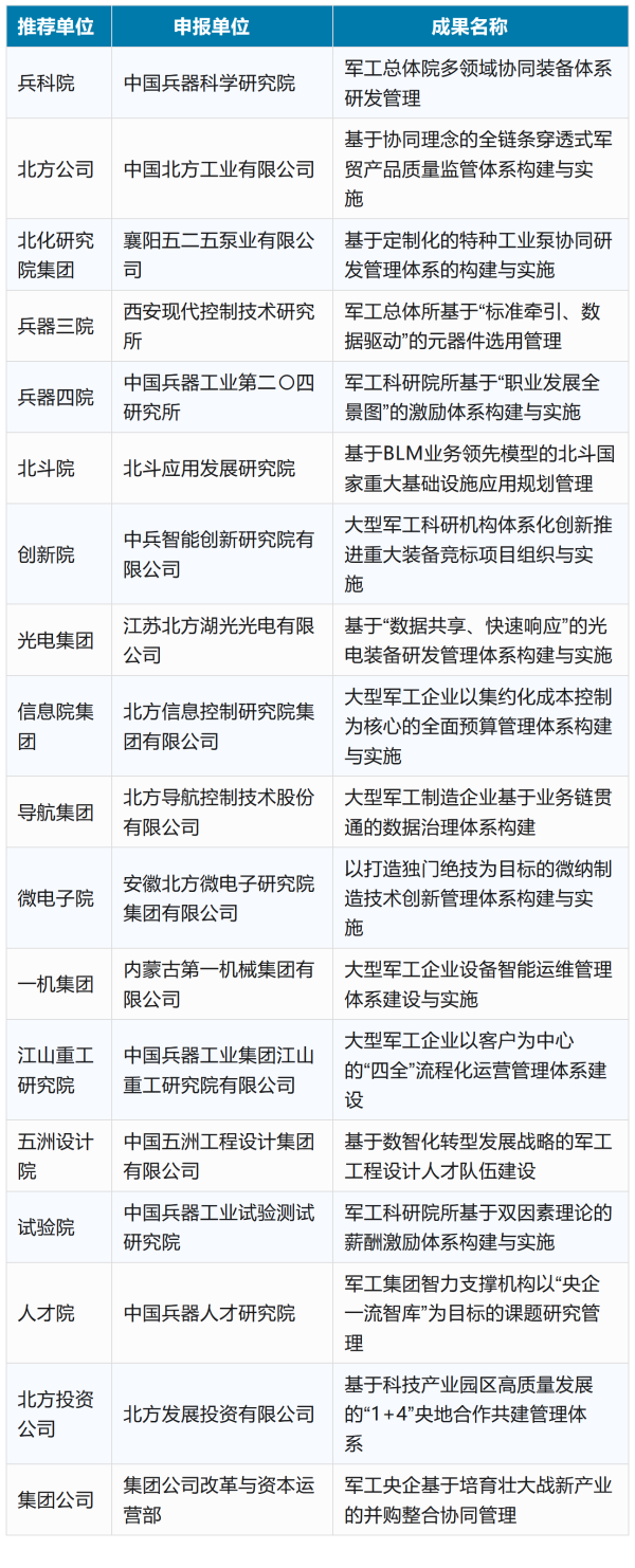 兵器工業(yè)集團(tuán)2025年度管理創(chuàng)新成果獲獎(jiǎng)名單發(fā)布