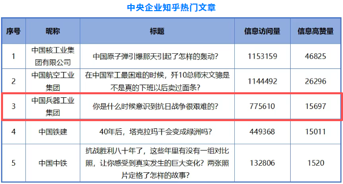 1月3日,國(guó)務(wù)院國(guó)資委新聞中心聯(lián)合清華大學(xué)新聞與傳播學(xué)院、中國(guó)企業(yè)聯(lián)合會(huì),發(fā)布“2025年度中國(guó)企業(yè)新媒體指數(shù)”,通過(guò)平臺(tái)作品數(shù)、播放量、點(diǎn)贊數(shù)、評(píng)論數(shù)等維度綜合評(píng)估,評(píng)選出各中央企業(yè)在微信、微博、視頻號(hào)、抖音、快手、今日頭條、知乎、Bilibili等新媒體平臺(tái)的5部熱門(mén)作品。 兵器工業(yè)集團(tuán)兩部作品入選,其中: 《亮家底兒,曬太陽(yáng)!西藏軍區(qū)某裝備保養(yǎng)大場(chǎng)面來(lái)了!》入選中央企業(yè)今日頭條熱門(mén)文章。 《你是什么時(shí)候意識(shí)到抗日戰(zhàn)爭(zhēng)很艱難的?》入選中央企業(yè)知乎熱門(mén)文章。 |