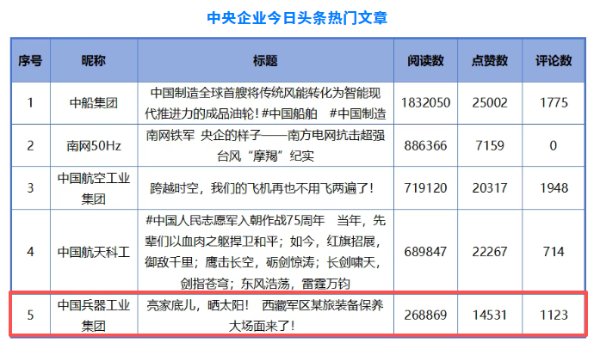 兵器工業(yè)集團(tuán)2篇文章入選中央企業(yè)新媒體“熱門(mén)文章” |